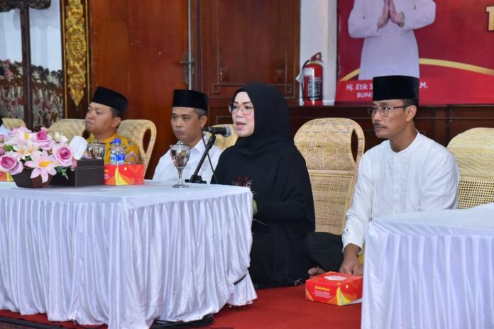 Dalam kesempatan tersebut Bupati menyampaikan bahwa sebagai insan yang beriman dan bertaqwa harus senantiasa bersyukur kehadhirat Allah SWT. “Bahwa kita masih diberi kesempatan untuk bertemu kembali dengan bulan suci Ramadhan tahun ini, Ramadhan merupakan bulan yang penuh berkah, dan bulan yang penuh ampunan,” ujar Bupati.