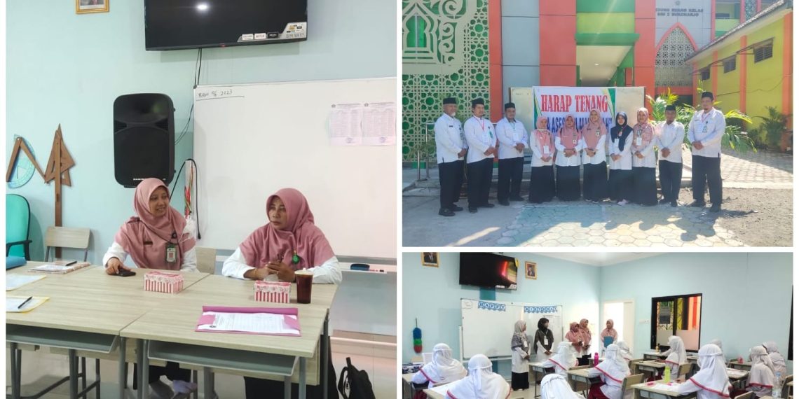 RILISJATENG.COM– Pengawas Madrasah, Umi Salasatun melakukan monitoring pelaksanaan Asesmen Madrasah di MIN 2 Sukoharjo dengan semangat dan santun yang membuat kami merasa senang dan semangat juga, Selasa (16/5/2023).