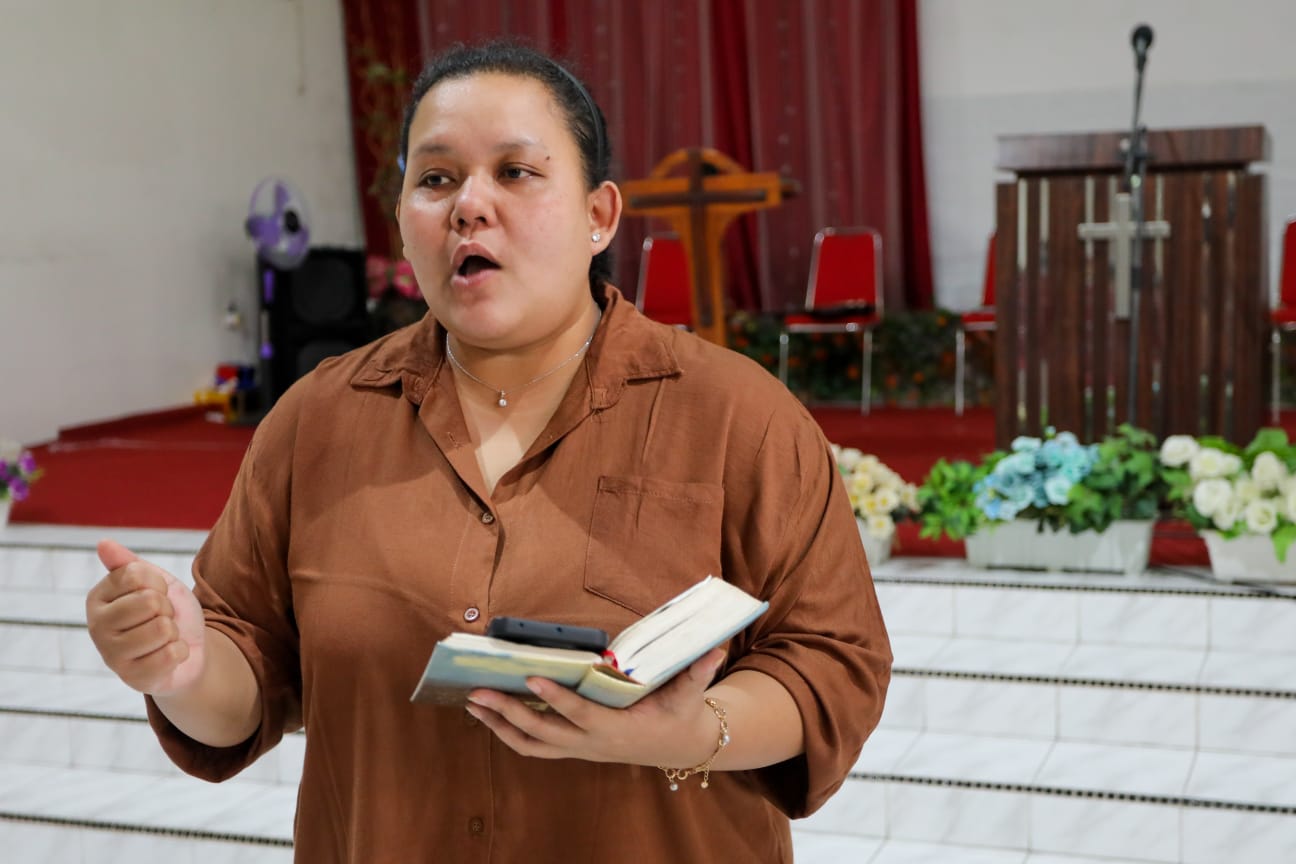 “Uang itu tidak 100 persen tidak kita pakai, kadang saya pribadi. Aku ada pertanyaan nih (ke murid sekolah minggu). Seperti ini. Kalau kalian bisa jawab, dibelikan dusgrip atau dibelikkan pensil. Atau mungkin dibelikan permen. Tak bagikan satu-satu,” kata Yemima di GUPDI Gawok, Jumat (7/4/2023).