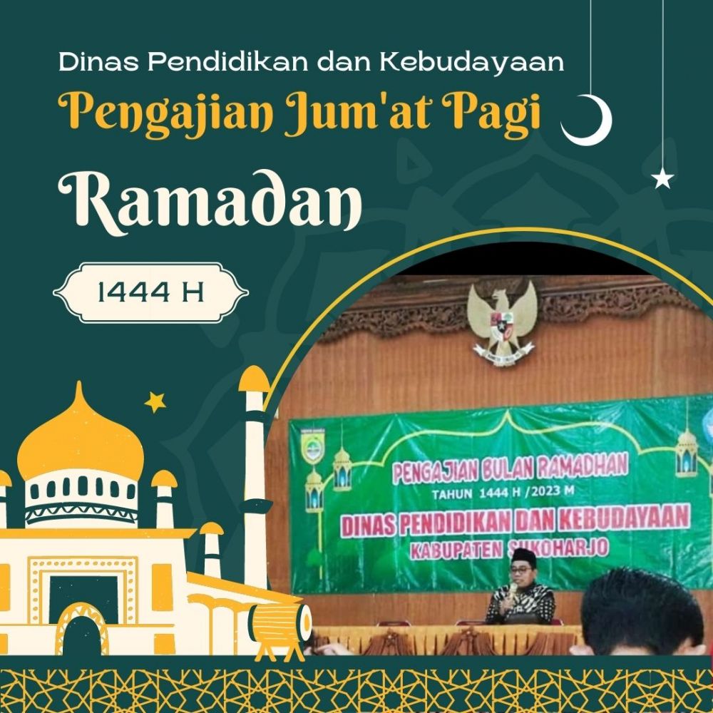 RILISJATENG.COM– Dinas Pendidikan dan Kebudayaan, 31/3/2023 menyelengggarakan Pengajian Jum’at pagi bertempat di Aula Utama Dinas Pendidikan dan Kebudayaan dengan peserta seluruh Keluarga besar pegawai di lingkungan Dinas Pendidikan. Pengajian di isi oleh beliau Uztads H Wahyono, S.Ag . Dalam ceramahnya beliau menerangkan Bahwa di bulan Ramadhan ini banyak umat islam yang berlomba-lomba dlam bersedekah karena Alloh menjanjikan siapa yang senang bersedekah maka Alloh akan menjaga 7 Keturunan dari kemiskinan. selain itu dengan bersedekah termasuk dalam salah amalan yang di rindukan surga ( lisan yang selalu membaca al Quran, Menjaga lisan, Memberi makan orang yang kelaparan, dan orang yang berpuasa di bulan Ramadhan).