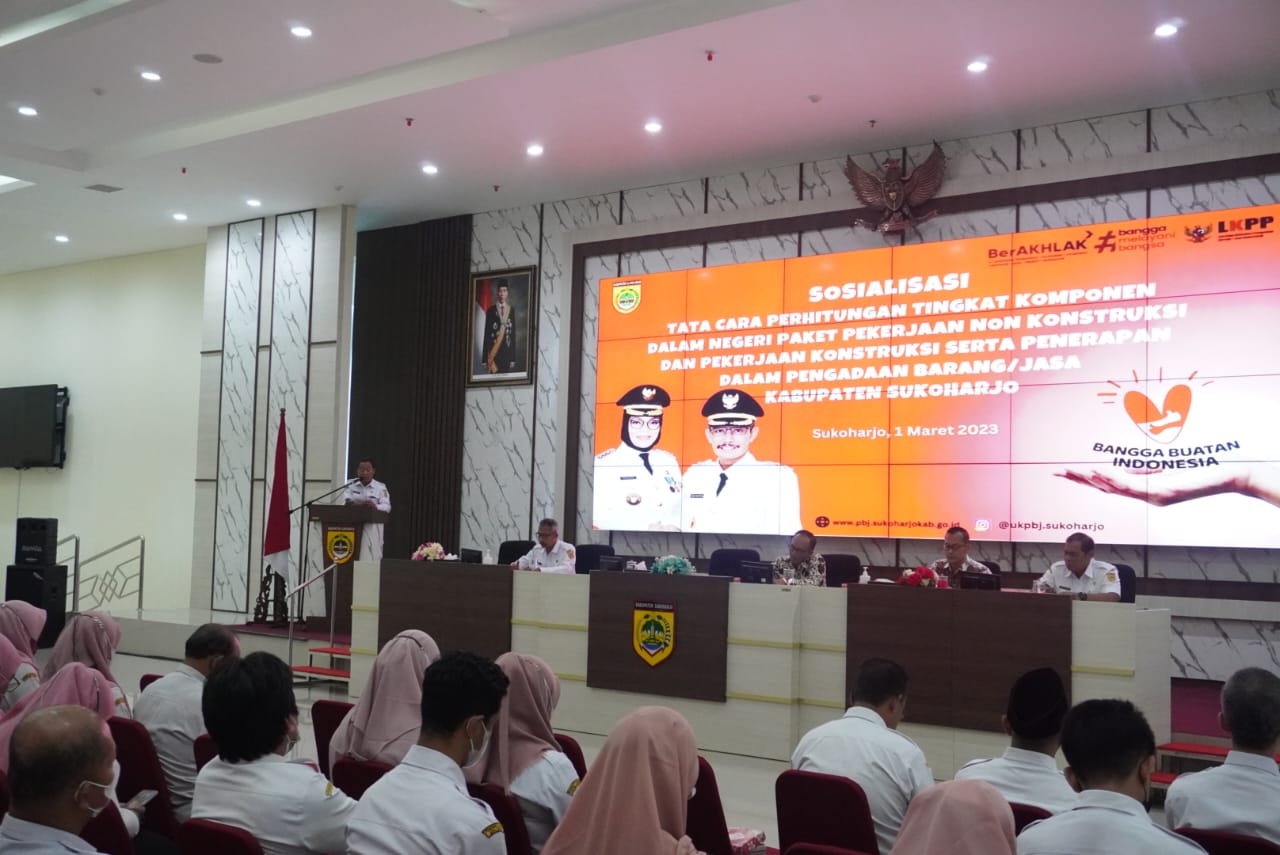 RILISJATENG.COM – Bagian Pengadaan Barang dan Jasa Sekretariat Daerah Kabupaten Sukoharjo menyelenggarakan Sosialisasi Tata Cara Perhitungan Tingkat Komponen Dalam Negeri Paket Pekerjaan Non Konstruksi dan Pekerjaan Konstruksi serta Penerapan dalam Pengadaan Barang/ Jasa. Bertempat di Menara Wijaya Lantai 10 Sukoharjo, pada Rabu (1/3/2023). Acara dihadiri oleh Sekretaris Daerah Kabupaten Sukoharjo, Asisten Administrasi dan Umum, dan Kepala Bagian Pengadaan Barang dan Jasa.