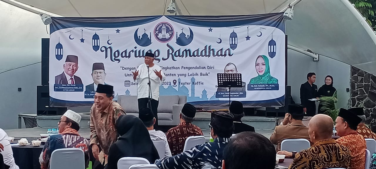 SERANG – Keluarga besar Perkumpulan Urang Banten (PUB) menggelar acara buka puasa bersama dengan tajuk ‘Ngariung Ramadhan’ di Pokel Garden Restoran Kota Serang, Selasa (4/4/2023).